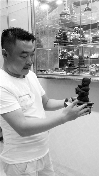 “现在生活节奏这么快,压力、烦躁,如果书房有这样一件禅礼的德化瓷木香盒,既是工艺品可以欣赏,又可以燃香、静心,让人从快节奏的工作中舒缓一下,最重要的是价格也很亲民,一般的工薪都可以接受,还可以一物多用。”走进十里河位于美联尚居的至鼎香云阁礼品店,店主杨楠正在向前来的顾客介绍他目前最热销的木质香盒。只看看店内一尊尊或嬉笑或沉思的瓷器工艺品整齐有序的摆放着,除了有绿色植物,还能依稀闻到淡淡的檀香,让人有些紧张的心情也一下放松下来了。
