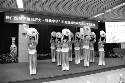 本报讯(记者 白莹)今年是中国人民抗日战争暨世界反法西斯战争胜利70周年。8月28日下午,普仁医院举办了“铭记历史·颂我中华”——纪念中国人民抗日战争暨世界反法西斯战争胜利70周年文艺汇演。该院职工通过自编、自演的文艺节目抒发广大党员、职工的爱国之情、报国之志。