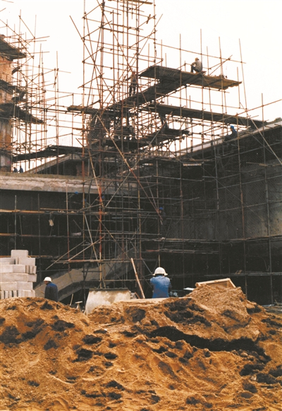 “木结构工程很关键,一定要保证质量。这是我们民族的历史性工程,一定得建好。”很快,时间就到了1986年冬季。不巧的是,那年冬天下了一场大雪,可是大家的热情高涨,冒雪施工成为常态。作为当时的木工班班长,冉国前在想,施工要考虑安全,也不能伤了大家的积极性。冒雪施工显然存在安全隐患。怎么办?急中生智,冉国前想了一个办法,借助他人之口暂时停工保安全,于是,就有了安全部说,继续冒雪施工存在安全问题,让大家停工,这下大家才停下来,等大雪过后,大家又投入到了火热的施工中。