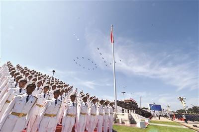 这是我国阅兵史上从未有过的大机群编队,世所罕见。