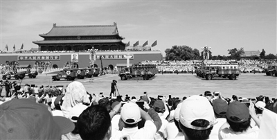 9月3日上午10时,中国人民抗日战争暨世界反法西斯战争胜利70周年纪念大会在天安门广场举行。首都各行各业300名劳模受邀参加纪念大会,并观看了盛大的阅兵式。威武的军队、先进的装备,让劳模们激动万分、精神振奋。