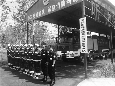 70多天来,以一个铁皮车库、4个集装箱房为营房,昌平区消防支队抽调14名精兵强将,2部高端灭火救援消防车和1部勤务指挥车,成立了阅兵训练基地核心区勤务分队,贴身服务于受阅部队。