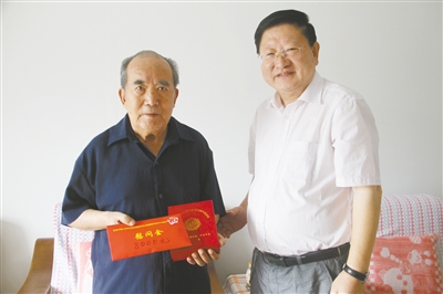 北京万方有限公司党委书记步红芳也看望慰问了曾经参加过抗日战争的老同志,现年90岁高龄的仇淑兰。向她致以崇高的敬意和慰问,感谢她曾经为革命事业和社会主义经济建设做出的贡献,同时为老同志送上了慰问金及中国人民抗日战争胜利70周年纪念章。
