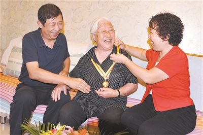 走访中,马小鹏亲手将中国人民抗日战争胜利70周年纪念章以及8000元慰问金交到抗战老战士孙振芳手中,也传达了职工们对老战士的慰问,同时带去的还有西城区工会工作者对老一辈革命者良好的祝愿以及深深的敬意。老人握着纪念章热泪盈眶,激动之情溢于言表。