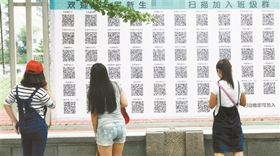 9月1日,沈阳,某高校迎来2015年新生入学的日子,与以往不同的是,今年该校将各班级的二维码统一悬挂在学校的显要位置,新生只要拿出手机按照自己的专业轻轻一扫,便可以加入所在班级的微信群,新生有什么需求可以通过微信群交流,极大的方便了新生找到“家”。