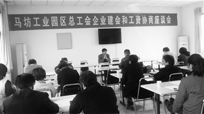 马坊镇工会服务站工资协商指导员会同地税、社保、企业经济管理等相关部门,上门走访非公企业法人和职工,征求意见和建议。今年,该镇有22家非公企业进入区域工资集体协商行列,比去年增加2家,覆盖742家小微非公企业职工1850人,覆盖率达到85%以上。