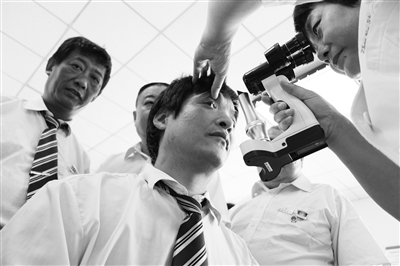 昨天,“北京市总工会光明的士公益活动”在的士职工之家举行。此次活动由市总工会交通运输工会和北京美目医院共同开展,为百余名司机进行了体检。据了解,的士司机不仅是受益者,还将成为“光明的士志愿服务队志愿者”参与到活动中,接送贫困人群、残障人士到医院进行检查治疗。本报记者 孙姸 摄影报道