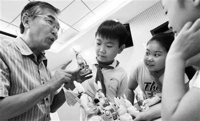 本报讯(记者 边磊)“脸蛋上没有胭脂,而只在小三瓣嘴上画了一条细线,红的,上了油;两个细长白耳朵上淡淡地描着点浅红;这样,小兔的脸上就带出一种英俊的样子。”北京作家老舍《四世同堂》中的一段兔爷的描写今天跃然出现在了孩子们的手中。