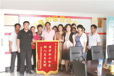 2015年3月,孙某的先生代替孙某到顺义区总工会职工帮扶服务中心,为张简儒律师送来锦旗以表示感谢。
