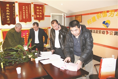 至此,从2014年底开始,经过调解小组的摸底调查、前期排查、实地走访、政策宣讲,该服装厂员工问题终于得以圆满的解决。