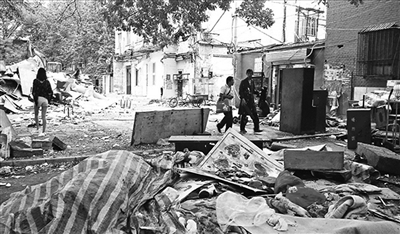 9月24日上午,西城区展览路街道、城管、公安等各部门配合,开始拆除百万庄中里中心环岛附近违建。此次拆除共分两期,彩钢板结构的150余间违章房屋被推平。据了解,这些违建房已经有13年历史了,许多被附近批发市场商贩用来当作仓库,也有的成为附近商贩贩卖饮料的存货地和盒饭的制作地点。