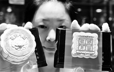 昨天,记者在国华商场、太阳金店看到,各种大小不同、造型不同、图案各异的黄金月饼粉墨登场,价格从几百元到几万元不等。据国华商场相关负责人告诉记者,金月饼作为中秋节应景货品,同时也更适合收藏、馈赠,属于投资金,适合保值增值,因此上市一周左右销量不错。本报记者 孙妍 摄影报道
