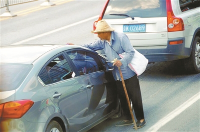 点评:这位老汉的举动哪是什么擦车啊,明摆着就是向人要钱,你要不给,他就不走,赖上你了!从安全计,有关部门也该管管。