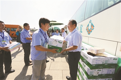 北京城建集团公司党委常委、工会主席徐荣明带队,近日来到天安门广场,看望慰问奋战在花卉景观布置工作一线的金都园林公司和花木公司职工,并送去慰问金和慰问品。据悉,为迎国庆,职工投入到天安门广场绿地的恢复施工工程中,并对原有花卉进行调整和更换,确保国庆期间景观效果。通讯员 何智华 李纪宁 王坤明 林晓松 摄影报道