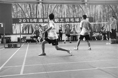 挂着工作人员胸牌的通州区工人俱乐部主任何庆鹏跑前跑后忙个不停,抽空接受了记者的采访。何主任介绍说:“这次通州区职工羽毛球比赛共吸引了35个职工代表队参赛,每队六名球员,赛程两天,共180场比赛。今天是团体赛,明天是个人赛,职工报名非常积极,而且各乡镇街道等单位事先都进行了选拔赛,掀起了职工体育运动热。”