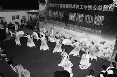 近日,中建三局三公司北京分公司携手朝阳区文化馆及其旗下筑梦艺术团,为北大肖家河项目的近500名农民工带去了一场水平高、亲情浓的别样中秋晚会,让农民工们度过了一个与众不同的中秋节。来自四川的农民工友邵帅说:“这个中秋不一样呀,虽然亲人不在身边,却一样有中秋团圆的感觉。”通讯员 王艺霏 刘仁刚 摄影报道