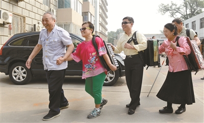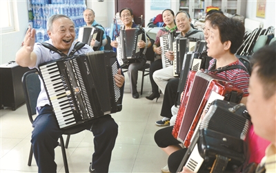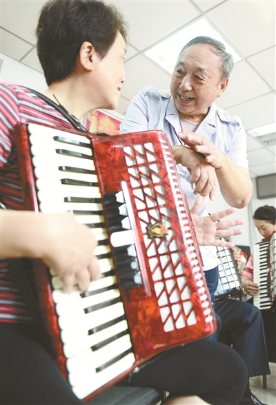 当人们从海淀区采石路7号社区活动室经过时,都会被从屋内传出的优美手风琴乐声吸引而驻足。合奏、重奏、独奏,琴声、掌声、笑声……因活动室地处空政文工团院内,人们自然地想象这是专业团体的练功琴房。其实,这是任士荣盲人手风琴班在上课。