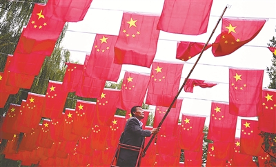昨天,八大处公园花团锦簇、菊蕊飘香。该园职工争相挂国旗、摆花坛,喜迎国庆,为游园市民营造喜庆祥和的氛围。当天,百余名职工将占地近万平方米的大型山体艺术“祖国好”铺挂在八大处虎头山上。