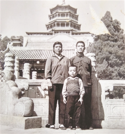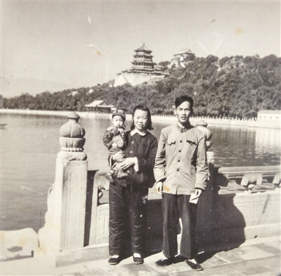 “幸福的全家福”拍摄于1960年的国庆节。当时,身穿便装的父亲,在沈阳军区坦克三师机械化一营三连任连长。这是父亲从部队回老家山西接母亲随军,在我们路过北京时,正好赶上国庆节,我们激动无比地登了长城,参观了天安门广场和人民英雄纪念碑后,我们一家三口在万寿山留下了这个幸福的时刻。图中右为父亲,左为母亲,母亲抱着刚刚一周岁的我。