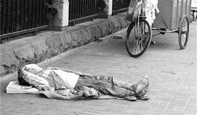 6日上午,邯郸市丛台公园外一位环卫工人席地而睡,身旁还放着各类打扫工具。得知这位酣然入睡的环卫大哥是加班后严重睡眠不足而睡在路边,过往路人纷纷开口称赞。 (10月7日新华网)