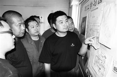 在工作室,一张张公交车辆电控技术原理图、一本本先进班组先进个人获奖证书,以及奥运保障、迎国庆60周年技术保障等具有特殊意义的奖杯吸引了青年职工的目光。杨义海介绍了自己从一名技校学生成长为一名全国级青年文明号班组长,一名北京市劳动模范的工作经历、攻关成果及当前劳模技术培训工作室的工作重点,并结合自身的感受为青工讲解了应该具有的职业素养和职业道德规范精神。
