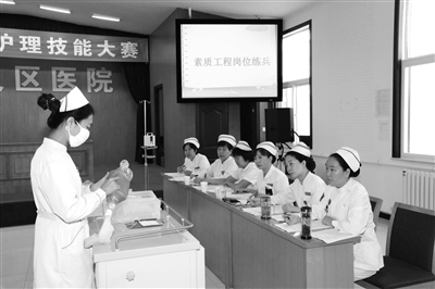 由顺义区卫生计生委工会主办、区医院工会承办的首都职工素质教育岗位练兵暨“护理技能操作大赛”活动近日举办。此次大赛按照护士、护师、主管护师及以上三个职称层级分别进行,包括床上洗头、口腔护理、静脉留置针、肌肉注射等9项比赛项目,800名护士参加了比赛。本报记者 张江艳 摄影报道