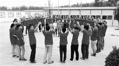 近日,在北京定福庄再生水厂工程工地上,北京城建道桥集团赵德刚项目团队的60多名员工围成一个大大圆圈,向中间的一对新人表示祝福。