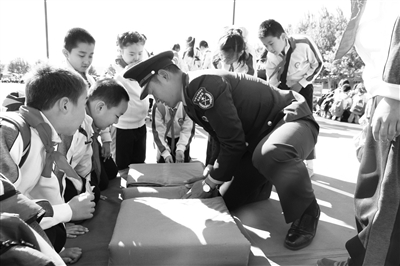 昨天,登莱小学师生700余人来到北京某预备役高炮团过军事日。队列和擒敌拳表演、高炮及雷达演示、叠军被比赛、近距离了解高炮、观看轻武器分解结合演示、自救互救教学、队列训练……官兵们整齐划一、刚劲威猛的展示让学生们看得大呼过瘾。本报记者 任洁 通讯员 金鑫 摄影报道