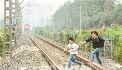 点评:此情景看着让人揪心,学生和家长之所以选择穿越铁路上学,肯定是因为这是最便捷的路径,有关部门应该想想办法,比如修个天桥,别让孩子们冒着生命危险上下学。
