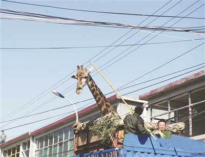 10月9日,济南野生动物世界的8岁长颈鹿常青搬家。它坐上大卡车从700多米的山上老宅,一口气搬到七八十公里外位于章丘市的新家。这一路由于它的个子太高,很多地方有电线和大树挡路。公园派出专门人员一路挑电线,好让它安然通过。从装箱起,这一路磨磨蹭蹭花了半天时间,才完成这趟艰难又有趣的旅程。