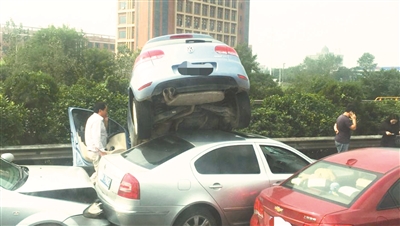 点评:不知道这些车主是怎么开的车,居然开到别人车顶上去了,是太急了还是刹车坏了?