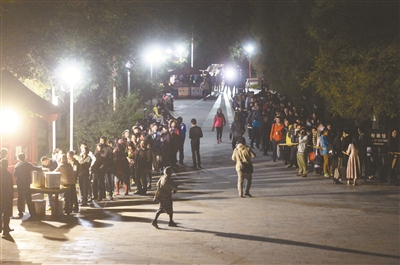 10月11日,为赶上《清明上河图》最后一天的展出,从全国各地赶来的观众在故宫武英殿外排队至12日凌晨1:30,才得以全部进入大殿院内。最后一日的展出时长已接近20个小时。