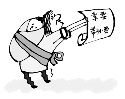 在中国传统观念里,爷爷奶奶带孙子,似乎是天经地义的事,不过今年,广西陆川县56岁的杨金美就将儿子和前儿媳告上了法庭,向他们索要“带孙费”。老人称儿子媳妇一回家就玩手机,孩子一吵闹就嫌烦,虽然他们没有在经济上啃老,但在履行抚养子女的责任方面存在实际的“家务啃老”行为。 (10月18日《成都商报》)