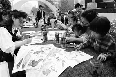 涂色书《秘密花园》长期占据畅销榜第一名。昨天,崇文门新世界百货在户外广场也新建了一个大型“秘密花园”,真实还原花园里的每一处景观。在花园里,秘密景观随处可见,让顾客在购物的同时还能获得不同的体验。在绘画大赛现场,顾客可在涂鸦区参与现场涂色秀,凭着天马行空的想象力为图案上色,将单调的外围打扮得缤纷多彩。本报记者 邱勇 摄影报道