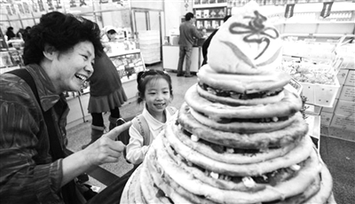 重阳节即将来临,北京稻香村6名糕点技师赶制了四座高达80厘米、直径70厘米的九层花糕塔,为消费者送上重阳祝福。记者在北京稻香村第三营业部看到,一座巨型花糕塔摆放在店里最醒目的位置。据糕点师介绍,制作花糕塔是北京稻香村的老传统,重阳糕又称花糕、菊糕、五色糕等。最讲究的重阳糕要做成九层,形似宝塔,顶部放置寿桃或者羊等象征着长寿吉祥的装饰物,取 “登高”之意,寄托着古人对身体康健、生活幸福的美好祝愿。