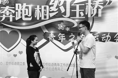 “各位朋友,请给我几分钟,允许我向心仪的那个她告白……”这是近日中建二局土木公司团委组织单身青年员工参加单位所在街道团工委举行的“为爱奔跑”大型趣味相亲运动会上勇敢告白的一幕。当天,土木公司十余名机关单身青年员工与辖区内十几家相邻单位的单身男女青年们欢聚一堂,在“一触深情”、“爱情接力赛”、“杯水传情”等一系列趣味游戏中加深了解、寻找有缘人。在这次交友活动中,该公司共有两对青年成功牵手。
