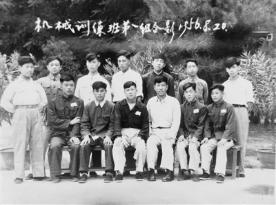 1949年,孙彬贵在朝外六里屯第二中心小学上学。1956年8月20日,他参加机械施工训练班,学习起重机械操作等知识。这张黑白照片,就是当时拍照的(前排左二)。
