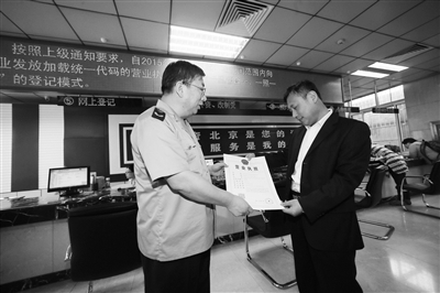 “几年前办理营业执照、组织机构代码证、税务登记证等怎么也得几个月才能全部办完,实行‘一照一码’新版营业执照办理,真是大大降低了我们的办事成本!”近日,大兴工商分局开始对办理本市新社企业颁发新版营业执照,领到“一照一码”新版营业执照的金先生感慨地说。