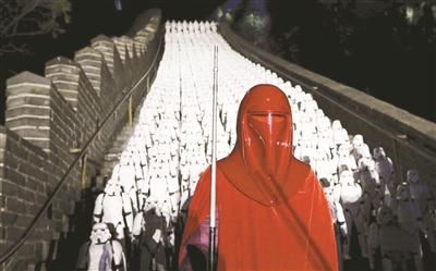 10月20日,长城上伫立的500个帝国冲锋队磅礴露面,占据了整段长城台阶,声势浩大、波澜壮阔。