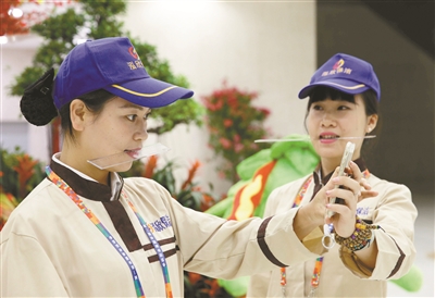 近日,福建福州为举办青运会,海峡奥体中心主席台、看台工作的100多名女保洁员,按照空姐标准培训,学习微笑服务、文明用语,进行礼仪训练。图为保洁员正在训练“笑露八齿”。