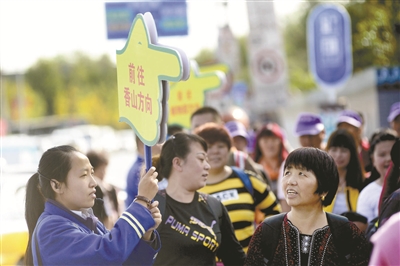 又到一年赏红时。大量游人前往香山观赏红叶,导致交通压力倍增,同时每天向公交人员咨询各类问题的游人不断。为了更好地服务乘客,公交505路车队职工自制指路牌,为过往行人义务指路。据了解,每年香山红叶节期间,505路车队都会由职工轮流值班,维护场站周边秩序,引导游客有序乘车。今年红叶节,约有300人次的公交职工利用业余时间轮流值班。
