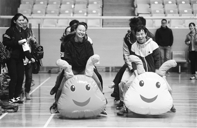 10月23日,东城区第六届非公企业职工趣味运动会举办。本次运动会将趣味和健身相结合,彰显协作能力和团队精神,比赛共设3对3毽球对抗赛、摸石头过河、快乐的大脚、充气毛毛虫4个团体项目,共有80支代表队近400名职工参加。在紧张角逐、快乐比拼的过程中,非公企业职工尽展风采,共享快乐,搭建起相互沟通、加深理解、增进友谊的平台。