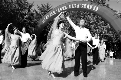10月27日,朝阳区安贞街道举办“2015安贞街道‘炫舞朝阳·梦在安贞’交谊舞展示会”活动,安贞地区6个社区共97人参加了此次活动。优雅的华尔兹、活泼的吉特巴、欢快的恰恰恰……各个社区都表演出了自己的特色。本次活动突出“炫舞朝阳·梦在安贞”和“促进和谐·舞出真情”两个主题,旨在服务安贞地区有舞蹈梦的居民,促进家庭和谐、邻里情深。本报记者 刘欣欣 摄影报道