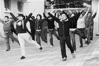 张宇对记者说:“在这支广播操队里,有五朝元老,也有第一次参加广播操比赛的新人。但是,不论是老队员,还是新手每天都是一板一眼地做每一个动作,唯恐由于自己动作不规范,影响全局。这里有的队员放弃了休年假;有的队员孩子病了,第二天也赶到单位参加训练;有的新队员脚崴了,也不肯休息,仍然每天坚持训练。” 阎义 摄