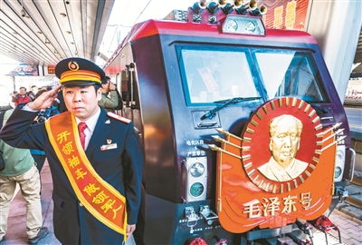 昨天14时16分,随着“毛泽东号”第十二任司机长刘钰峰的一句“前方注意,停车好了”,由“毛泽东号”号机车牵引的长沙至北京的T2次旅客列车稳稳停靠在北京站第一站台,以毛泽东同志名字命名的北京铁路局丰台机务段“毛泽东号”机车实现安全走行1000万公里,相当于绕地球赤道250圈,再创中国铁路机车安全走行新纪录。“毛泽东号”机车1946年10月30日命名,先后经历了蒸汽、内燃到电力机车的五次换型,2014年12月25日“毛泽东号”机车第五次换型为运行速度160公里/小时的和谐3D型1893号电力机车。