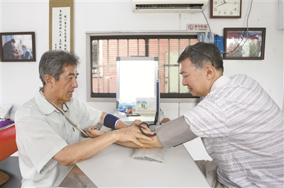 叶如陵的服务对象大部分是老人。为了更好的服务老年人,年约七十岁的叶如陵又自学了老年医学,在为老人看病时,他会从老年人的生理特点出发,“能不吃药就尽量不吃药,血糖指标也不能按年轻人的标准要求,许多老人在我这儿瞧完以后,都对自己的身体重新找回了信心。”