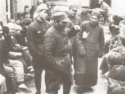 1945年10月28日,国民党军第十一战区副司令长官兼新八军军长高树勋率部在邯郸战场起义。随后,中共军队围歼国民党军其余两个军。图为高树勋与驻地老百姓交谈。