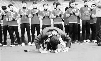 2015年1月,兼任俱乐部总经理的体育局副局长于长龙请辞,朴成雄兼任新任总经理。可以说,人事的变动是延边队今年脱胎换骨的原因。在今年延边足球冲超成功的庆典仪式上,朴成雄以“磕头”的礼节向球迷致谢。这一刻,他在用最高形式的礼节,替别人的过错道歉。面对上一任领导留下的“烂摊子”,朴成雄不仅承担了本不属于他的责任,而且在体制中艰难地前行。