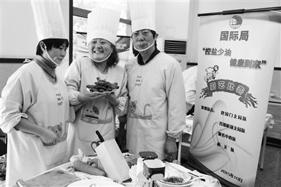 “肉质极嫩的孔雀开屏鱼真是‘煮’出来的!”“这道瓢白菜卷确实是没放盐就能做出来!”一声声惊叹来自北京国际邮电局近日举办的“控油少盐健康到家”厨艺比赛现场。全局16名选手参加了此次比赛,向职工传播了健康生活理念和科学饮食知识。通讯员 杨波 摄影报道