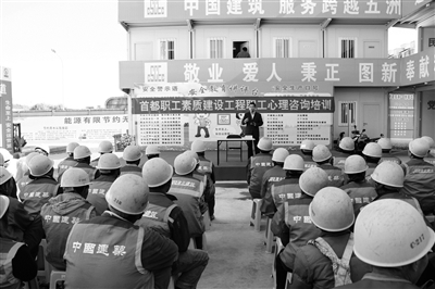首都职工素质建设工程立足于服务首都经济社会发展、服务企事业单位发展、服务职工职业发展的定位,从企业和职工需要出发,以职业能力建设为核心,创造开放的学习环境和学习方式。通过集约政府、工会和社会多方资源搭建公共服务共享平台,以包括职工素质教育、技能人才培养和创新成果应用三大体系近20个职工服务项目为载体,构建政府与企业、社会教育机构与企业、企业与企业间的共同培养机制,引导职工进行终身学习。职工心理咨询与培训活动是首都职工素质建设工程的一项重要内容,今年首都职工素质建设工程指导小组办公室面向全市企事业单位职工开展活动达到60场,帮助职工掌握正确的心理压力疏导方法。